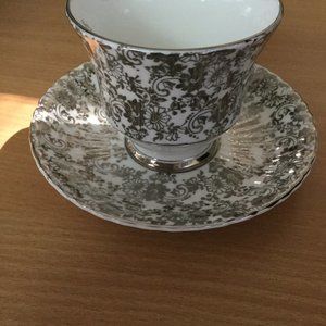 Royal Windsor fine bone china saucer and cup set silver 25th anniversary