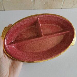 Vintage Royal Winton Grimwades Mottled Pink Divided Tray - Art Deco English Speckled Rose Red Gold Trim