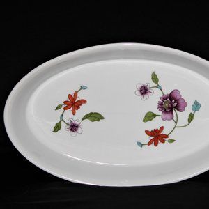 This bakeware dish, with a pattern of two floral splashes, is from the Astley collection. Made by Royal Worcester in England, it is in very good vintage condition, without cracks, chips, or crazing. The colours on the flowers are still vivid and vibrant.