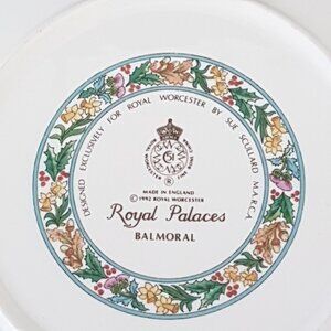 Backstamp: "Designed Exclusively For Royal Worcester By Sue Scullard - Royal Worcester Fine Bone China - Made in England - 1992 Royal Worcester Royal Palaces - Balmoral"