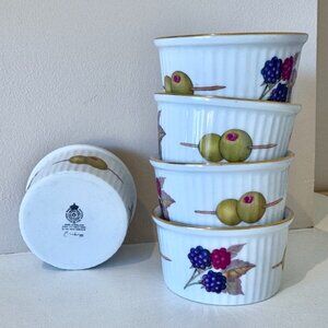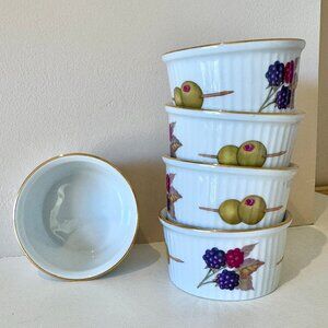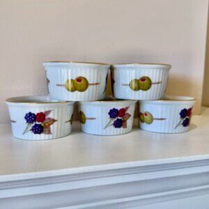 Royal Worcester Evesham Set of 5 Gold Rimmed Bone China Ramekins