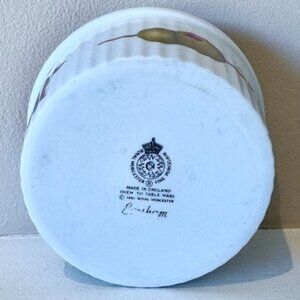 Set of 5 gold rimmed bone china "Evesham" ramekins by Royal Worcester, made in England. Great used condition, some gold has worn off over time. Measures about 3 inches in diameter, 1.75 inches tall. Cat friendly, nonsmoking home.