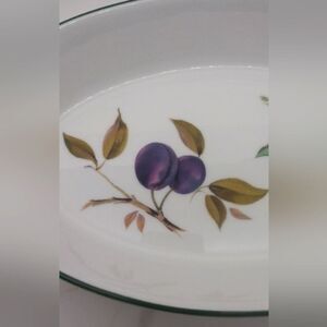 Royal Worcester England Evesham Vale,this exquisite porcelain deep dish platter from Royal Worcester showcases a vibrant fruit design, making it a stunning centerpiece for any dining occasion. Its elegant oval shape and intricate detailing reflect the brand's commitment to quality and timeless design.