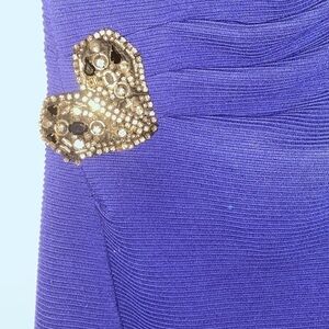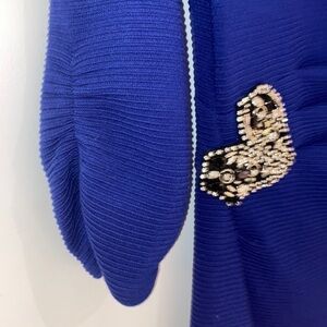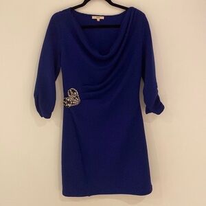 Royal blue midi dress 3/4 ruched sleeves dropped neckline Size Large