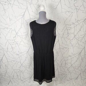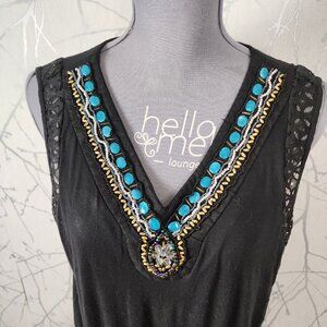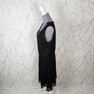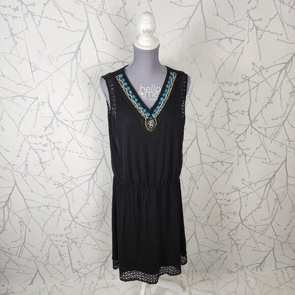 Roz & Ali Black Stretch Knit Jewel Necklace V-Neck Dress