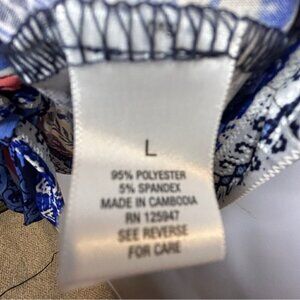Roz & Ali Short Sleeve Blue Coral White Multi Stretch Blouse Large