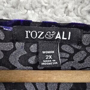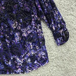 Roz & Ali Women Velvet Burnout Blouse Size 2X Purple 3/4 Sleeve Whimsical Witchy