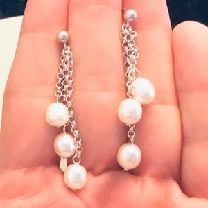 Roz Kwan Sterling Silver Freshwater Pearl Dangle Earrings