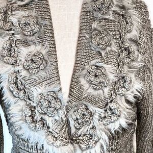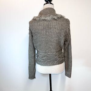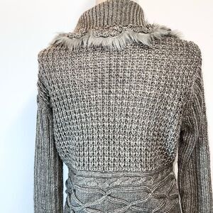 Roz & Ali Cable Knit Faux Fur Crocheted buttons & embellish Sz PL * Host Pick *