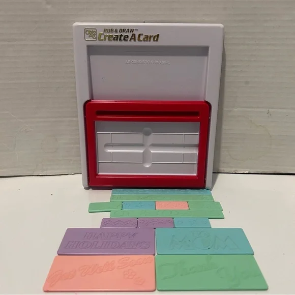 VINTAGE 1992 OHIO ART RARE CREATE A CARD RUB DRAW PLATES DRAWING TOY