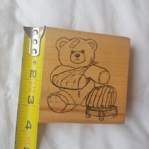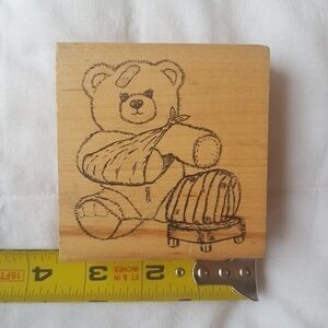 Rubber teddy bear stamp. Approximately 3 1/2" x 3 3/8". Has ink staining. Smoke free home.