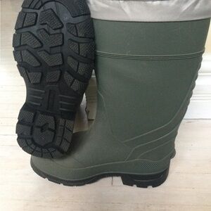 Sturdy rubber work boots with thermal liner and steel toes. Size 39 EU, 8 US. Never worn too big for me. Make is Aggressor.