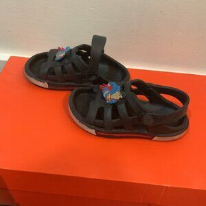 No brand sandals for toddler boys. Marked size says 22/23 which is like a toddler 6-7. Straps on the back can be pushed up so it can be a sandals or like slip ons. Still in good condition.