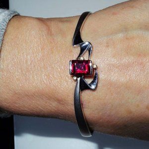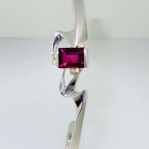 Elegant and finely detailed Bracelet, securely nestled with a 2.50 Carat rectangular Rubelite Tourmaline,