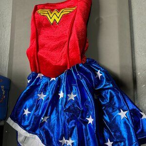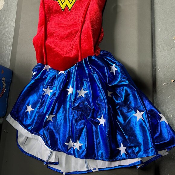 Being a Wonder Woman requires two things: a long list of superpowers and the kind of outfit that describes your genius. You may have to do the homework to gain superhuman strength and the ability to fly, we can connect you with the red, white and blue dress that lets villains know how bodacious you are. Officially licensed DC ComICS Wonder Woman costume dress, cape, fabric headband, dolls, belt and boots. The strapless mini dress features the logo on the bodice and is printed with stars on the skirt. IMPORTANT SIZE INFORMATION - Costumes are sized differently than apparel, it is important to review the SECRET WISHES size chart before making selection.