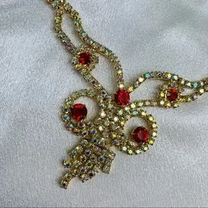 Cutest Necklace Ruby and Gold Color Sparkling Rhinestones.