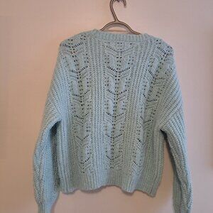 Ruby Moon knit sweater in a beautiful seafoam/mint green, size large, gently worn only a couple of times, in excellent condition,95% Polyester, 5% Wool, machine wash cold, dry flat. Sits at waist.