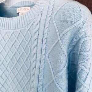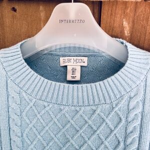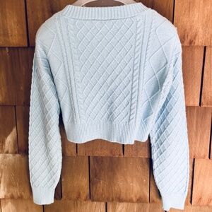 Elegant crew neck crop sweater. Extremely soft and cozy fabric. First photo of front is best indicator of color; other photos show it lighter than it actually is.