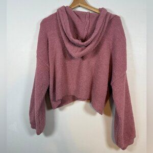 • Keywords: fuzzy hoodie, cropped sweater, plush loungewear, mauve pullover, cozy top