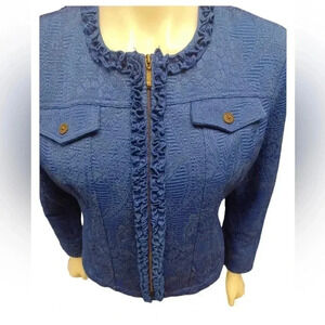 Ruby Rd. Blue Textured Ruffles Zip Up jacket Size 8
