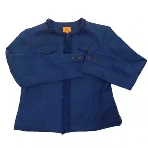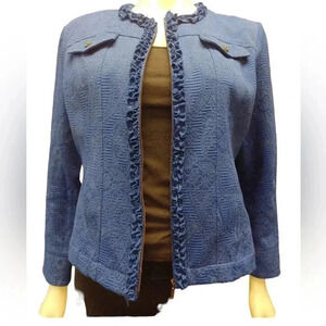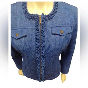 Ruby Rd. Blue Textured Ruffles Zip Up jacket Size 8