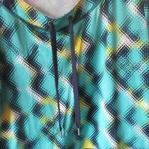 Ruby Rd Dark Green & Navy Blue Geometric Print Top NEW LG