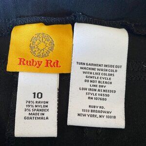 Ruby Rd stretchy black cropped pants with back pockets, size 10. Great used condition. Waist measures 15 inches laying flat (but there is stretch). Inseam measures 26 inches. Cat friendly, nonsmoking home.