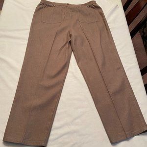 Ruby Rd. tan jeans with metallic fabric woven through. 56% ramie, 22% Cotton, 20% polyester, 1% spandex, 1% metallic.