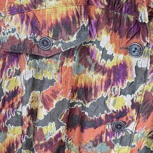 Add a splash of color to your wardrobe with this eye-catching Ruby Rd Woman blouse in size 20W. Featuring a bold abstract print in vibrant hues of orange, purple, yellow, and black, this long-sleeve top is designed to flatter and stand out. The button-down front and dual chest pockets with button closures offer both style and practicality. Crafted from a lightweight, breathable fabric blend, it’s perfect for layering or wearing solo. Whether you're heading to brunch or dressing up your everyday look, this blouse brings effortless charm and comfort.