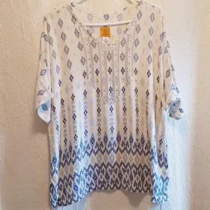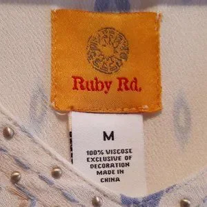 "Ruby Rd" peasant blouse with beaded front. Size medium. Blues and white. Excellent condition