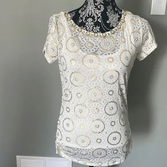 Ruby Rd. white/gold short sleeve top
