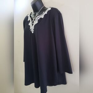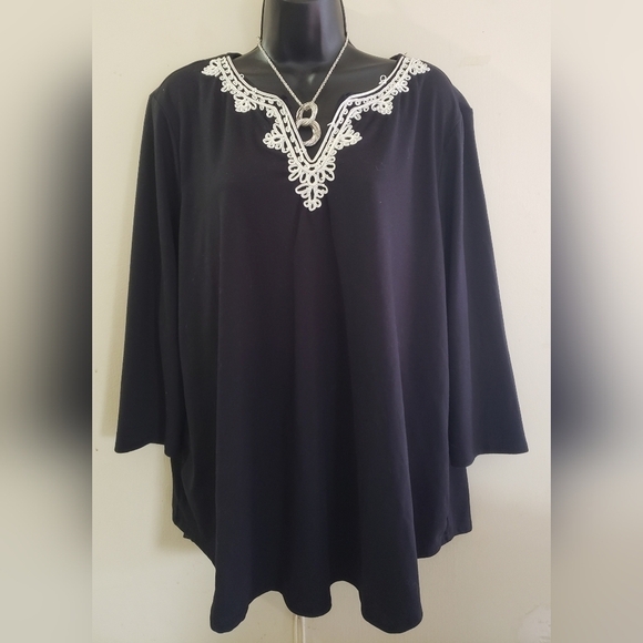 Beautiful black tunic style top with a white embroidery around the front neckline
