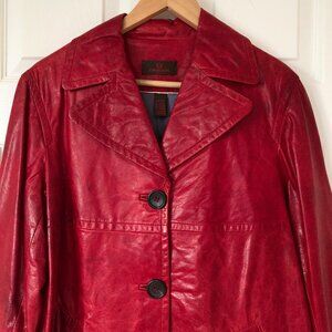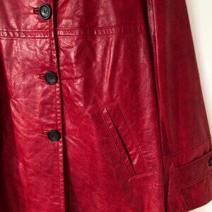 Ruby Red Danier Button Down Leather Coat