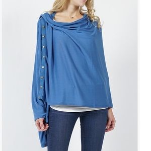 Button-snap closures make it a cinch to convert this into a warm wrap, a cozy cardigan, or an endlessly-customizable infinity scarf. A soft, stretch-infused fabric blend keeps you warm and cozy.