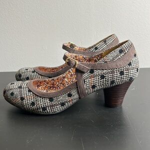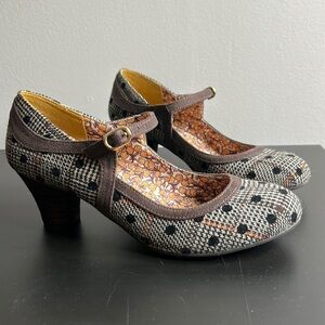 Ruby Shoo Lexi Plaid and Polkadot Tweed Mid Heel Mary Jane NWOT Size 6