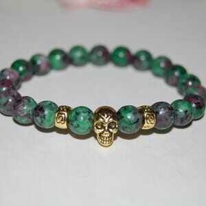 Ruby Zoisite Bracelet,Skull Bracelet,Ruby Golden Skull Bracelet