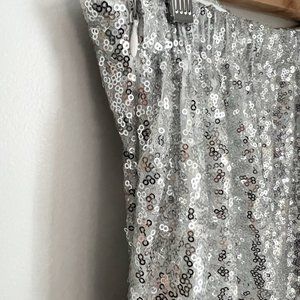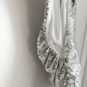 Ruched Tulip Hem Sequin Mini Skirt Silver Size Medium