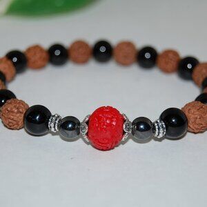 Rudraksha Bracelet,Onyx Bracelet,Rudraksha and Black Onyx Stone Beads