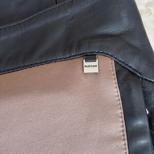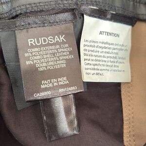 In good preowned conditionn Rudsak leggings, stretchy polyester spandex and genuine buttery soft leather. Zippered side pockets, leather waistband and leather side leg panels.