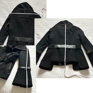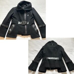 Rudsak Fitted Cropped Wool Jacket Leather Trim Bell Sleeves Black Size S