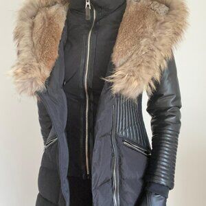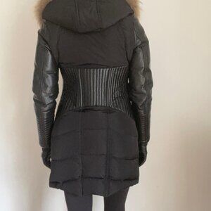 Rudsak Manteau - Leather Sleeved and Corset Parka With Fur Trim and Hood