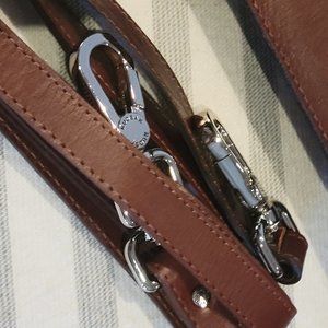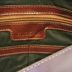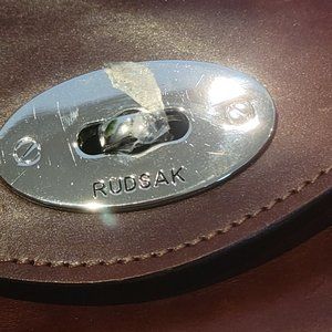 Rudsak, NWT, Brown smooth leather envelope clutch with high polish silver toned hardware, with both a shoulder strap as well as an additional Wristlet strap. Interior has a zip pocket and 2 slip pockets. Gorgeous soft leather. Some of the protective film is still on the latch per pic. Some very minor dents on the back as a result of storage.