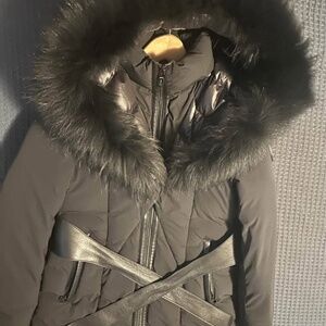 Stunning condition, black on black with real fur. This is no longer being made by Rudsak with the real fur. Barely worn, comes with sleeve to store fur