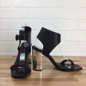 Rudsak Tika Women's Heeled Shoes - Black Leather Strap - Silver Hot Pumps - New