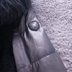 sleeves and pockets leather very warm and beautiful size S but fits M