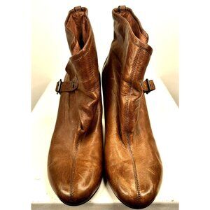 Rudsak Boots Womens Sz 6.5 Brown Leather Wedge Ankle Strap Buckle Foldover
