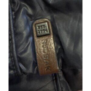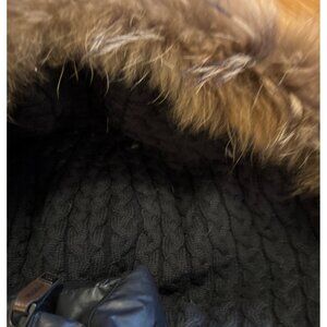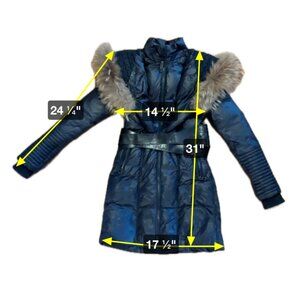 Rudsak Womens TP/XS Navy Down Long Coat With Fur Trim Hood Leather Accents