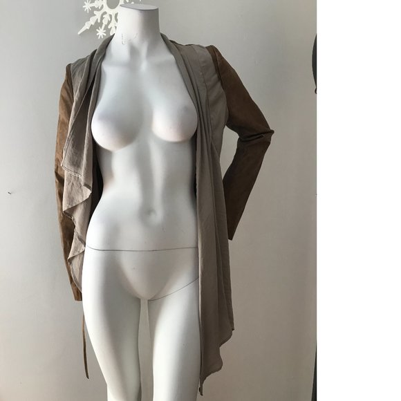 Rudsak leather fall summer distressed brown cardigan jacket coat beige tan