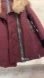 A burgundy jacket with a plush fur collar, zip-up front, and a thick wool-like material.