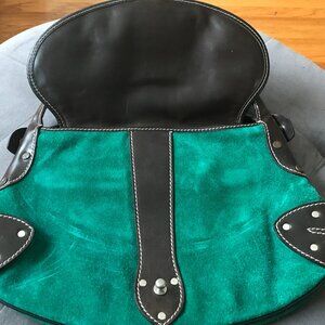 Ruehl No 925 Green Suede & Leather Bag w/ Brass Accents